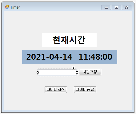 TextBox의 시간을 바탕으로 시간조정 버튼을 클릭하면 Timer의 시간이 조정됩니다.