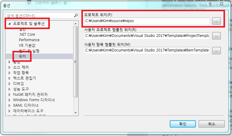 2. 프로젝트 및 솔루션 - 위치 - 프로젝트 위치 변경
