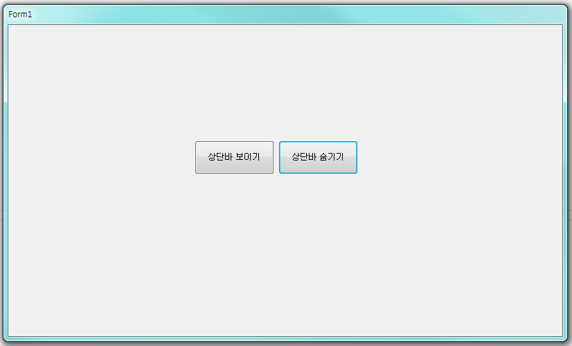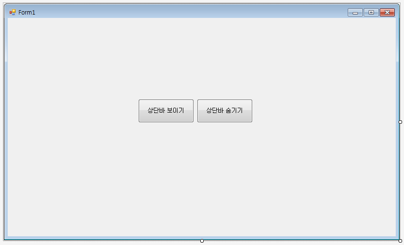 - 상단바 숨기기 버튼을 클릭하면 Form1의 ControlBox를 false로 변경하여 상단바를 비활성화시킵니다.