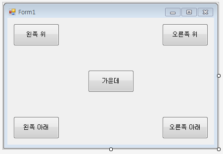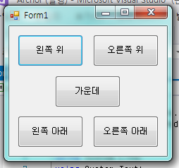 하단의 소스를 보면 button1.Anchor = (AnchorStyles.방향) 으로 Anchor 속성을 수정할 수 있습니다
