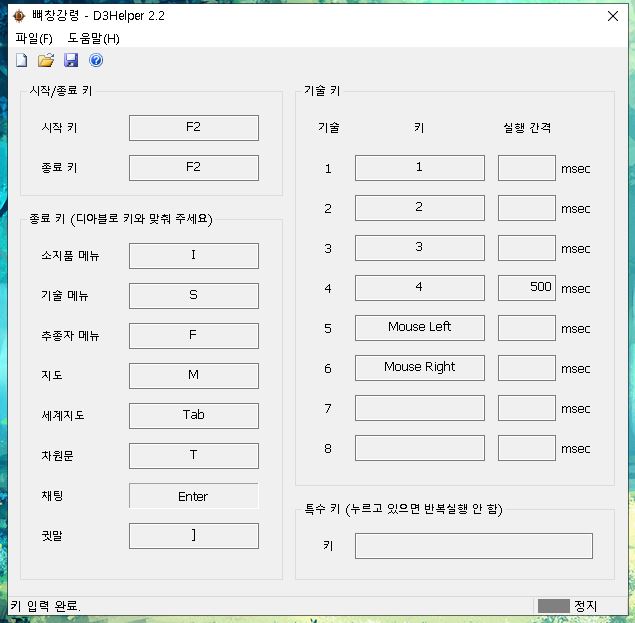 시작 키와 종료 키가 있는데 시작 키를 누르면 헬퍼가 자동으로 키보드를 입력해줍니다