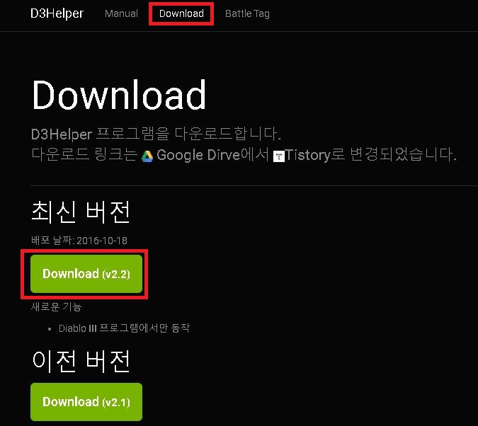 2. 상단의 Download탭을 눌러 D3Helper 다운로드로 이동합니다