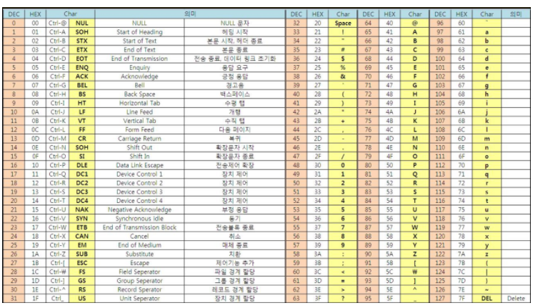 하단은 아스키코드 표입니다