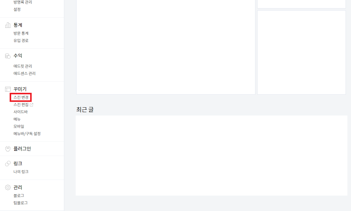 1. 블로그의 관리자 페이지로 이동합니다