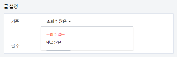 1. 글 목록 글 수 : 글 목록에 표시될 글의 개수를 설정합니다