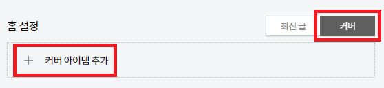 홈 설정에서 "커버"탭의 "커버 아이템 추가"를 선택하면 다음 화면으로 넘어갑니다.
