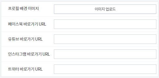 페이스북, 유튜브, 인스타그램, 트위터의 URL을 입력할 수 있습니다