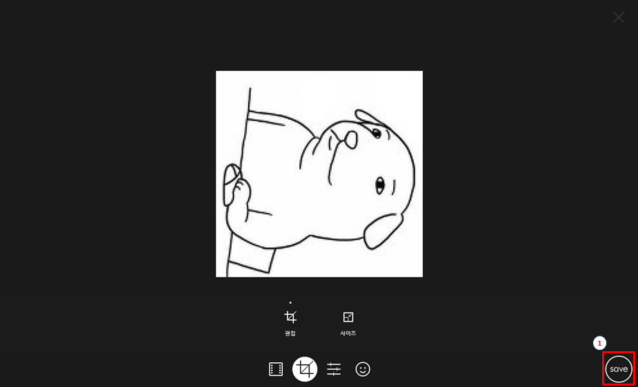 왼쪽 상단의 산 모양 아이콘 클릭해서 이미지편집 화면에 들어갑니다