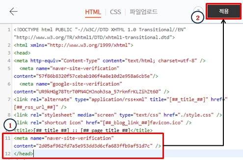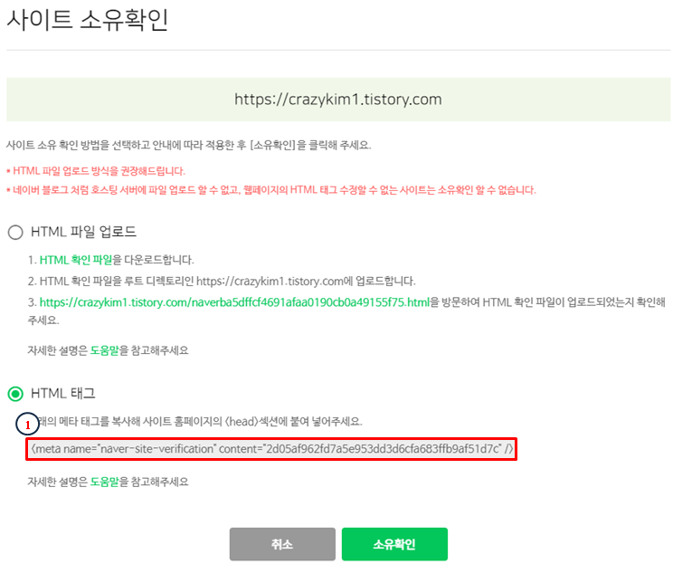HTML 태그를 이용한 방식으로 소유를 확인하겠습니다