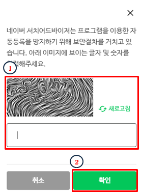 보안문자가 잘 안 보이면 "새로고침"버튼을 누릅니다
