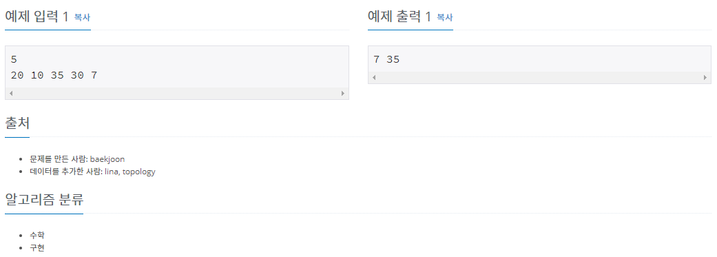N개의 정수가 주어진다. 이때, 최솟값과 최댓값을 구하는 프로그램을 작성하시오.