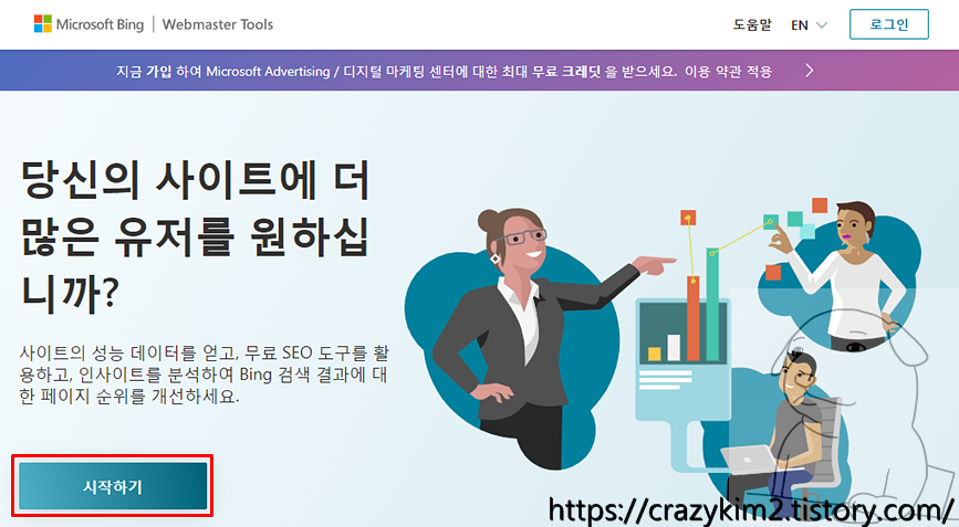 아래의 링크를 통해서 빙 웹마스터 도구에 접속합니다