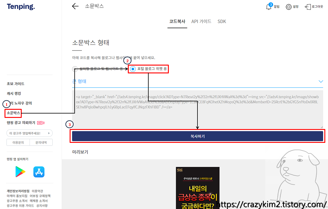 이번 글에서는 티스토리 블로그에 텐핑(10ping) 광고를 넣어 수익을 얻는 방법에 대해서 알아보겠습니다