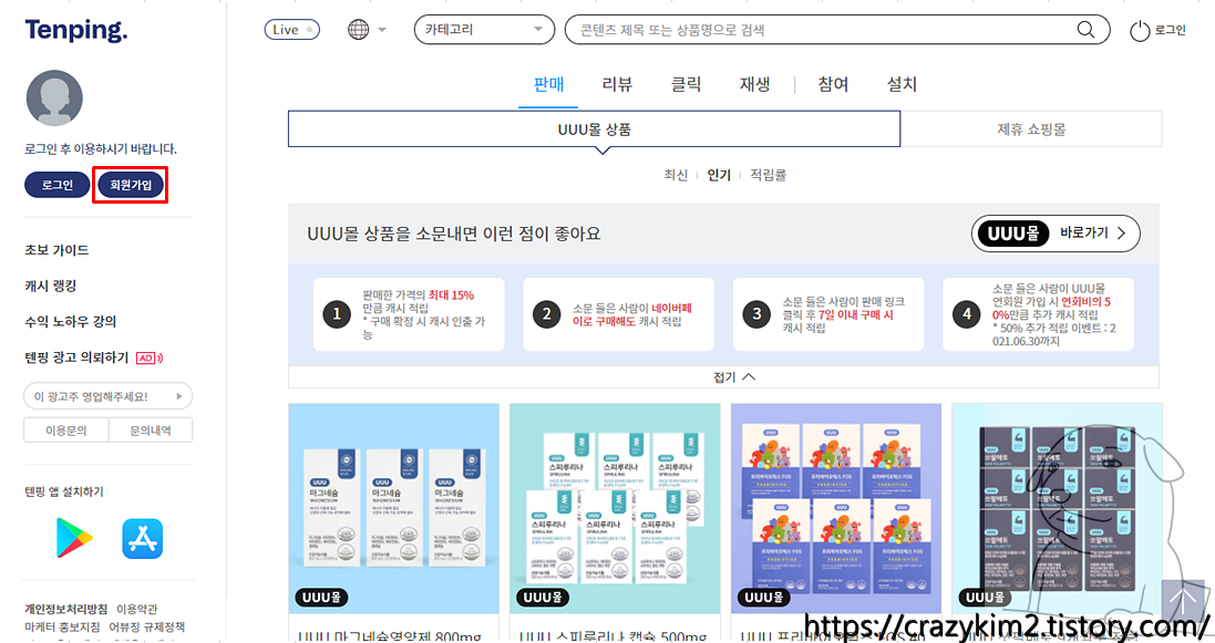 텐핑으로 수익을 얻기 위해서는 회원가입을 해야합니다