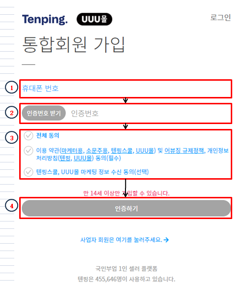 -> 참고로 텐핑스쿨, UUU몰 마케팅 정보 수신 동의는 선택사항이므로 안 하고 넘어가셔도 됩니다