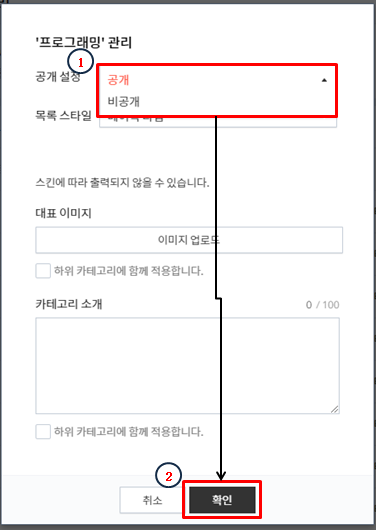 카테고리 관리에서 비공개로 전환하기