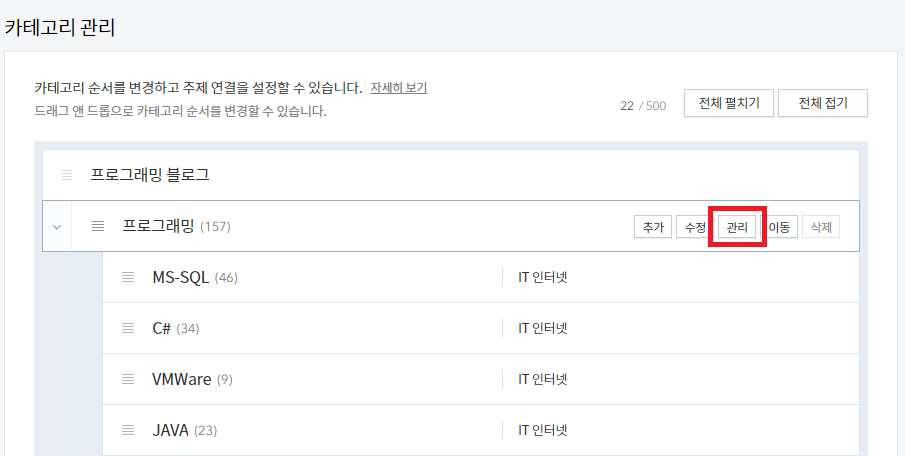이어서 카테고리 관리를 통해서 비공개로 전환하는 방법에 대해서 알아보겠습니다
