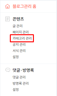 블로그 관리자 페이지에서 카테고리 관리로 들어갑니다
