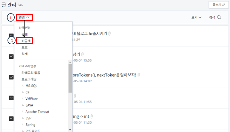 글 목록 비공개로 전환하기