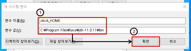 2. 입력이 완료됐으면 "확인"버튼을 클릭해 JAVA_HOME을 생성합니다!