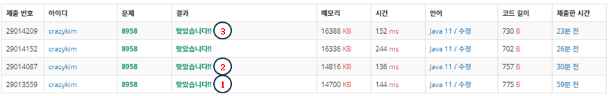 여기까지 제가 풀은 세 가지 방식이었습니다