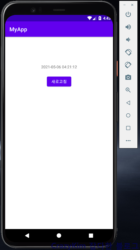 정상적으로 현재시간이 출력되고 "새로고침"버튼을 클릭하면 현재시간이 Refresh가 됩니다