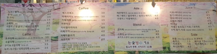 메뉴판입니다