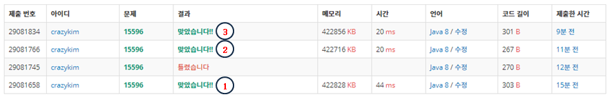 여기까지 제가 풀은 세 가지 방법이었습니다