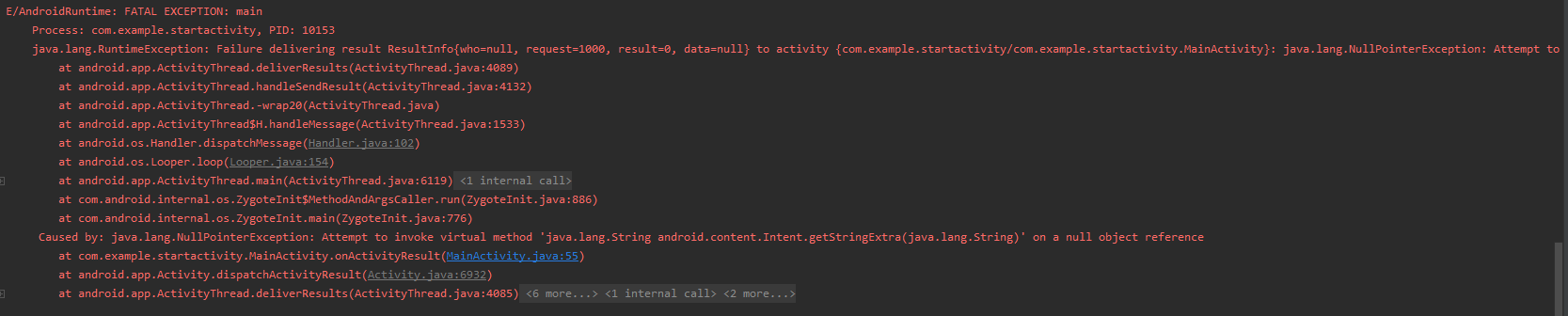at com.example.startactivity.MainActivity.onActivityResult(MainActivity.java:55)