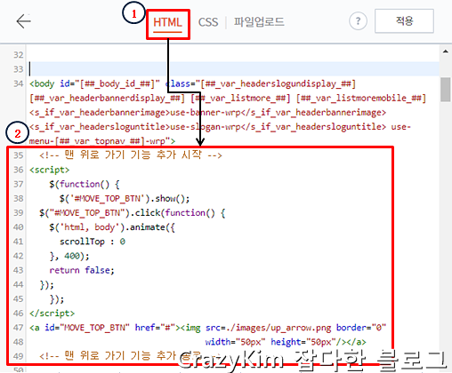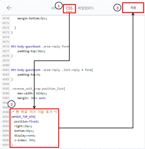 3. "적용"버튼을 눌러 맨 위로 가기 버튼 기능을 적용합니다