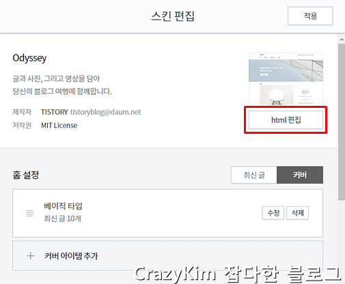 오른쪽 상단의 "html 편집"으로 이동합니다