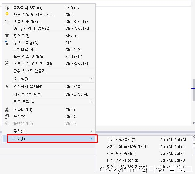 Ctrl + M + O : region을 펼치지만 메서드는 닫아버립니다