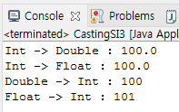 System.out.println("Float -> Int : " + ((int) Math.round(f)));