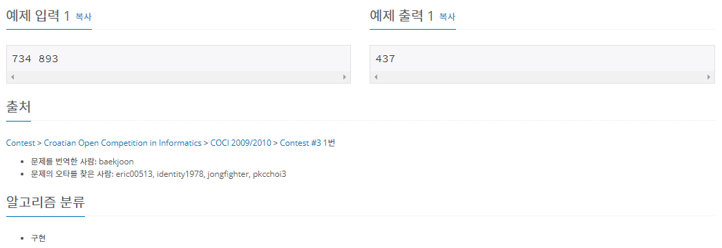 상수는 수를 다른 사람과 다르게 거꾸로 읽는다. 예를 들어, 734와 893을 칠판에 적었다면, 상수는 이 수를 437과 398로 읽는다. 따라서, 상수는 두 수중 큰 수인 437을 큰 수라고 말할 것이다.