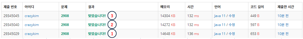 시간은 2번 방식, 3번 방식이 동일하게 나오고, 메모리는 2번 방식이 제일 빠르게 나왔습니다