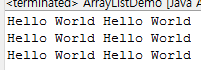 1. a1.remove("Hello") 첫 번째 "Hello"가 삭제되어 [World, Hello, World]가 출력됩니다