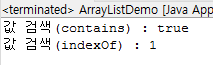 System.out.println("값 검색(contains) : " + al.contains("Hello"));