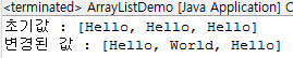 "Hello", "Hello", "Hello"에서 "Hello", "World", "Hello"로 값이 변경되었습니다