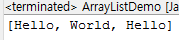 1. a1.remove("Hello") 첫 번째 "Hello"가 삭제되어 [World, Hello, World]가 출력됩니다