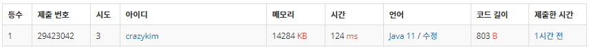 두 번째 다듬은 답안이 백준알고리즘 상위권에 올랐습니다!!