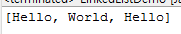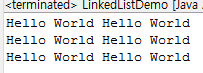 위의 코드를 실행하면 ll.add(1, "World");를 하여 "Hello"와 "Hello" 사이에 "World"가 추가된 것을 확인할 수 있습니다