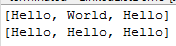위의 예제를 실행하면 "Hello", "World", "Hello"를 set(1, "Hello")를 사용하여