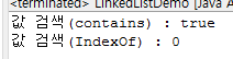 System.out.println("값 검색(contains) : " + ll.contains("Hello"));