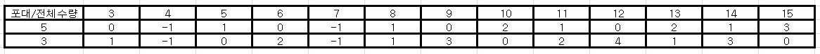 위는 N에 대한 5kg포대와 3kg포대의 필요한 갯수입니다