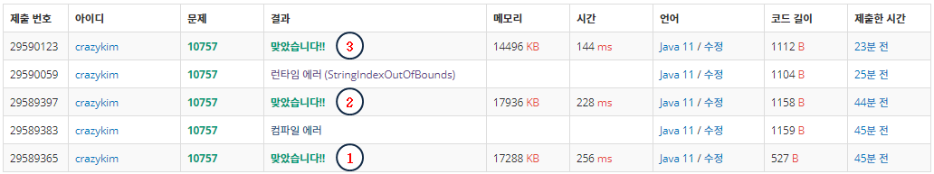 세 가지 방법으로 풀었을 때의 시간과 메모리입니다
