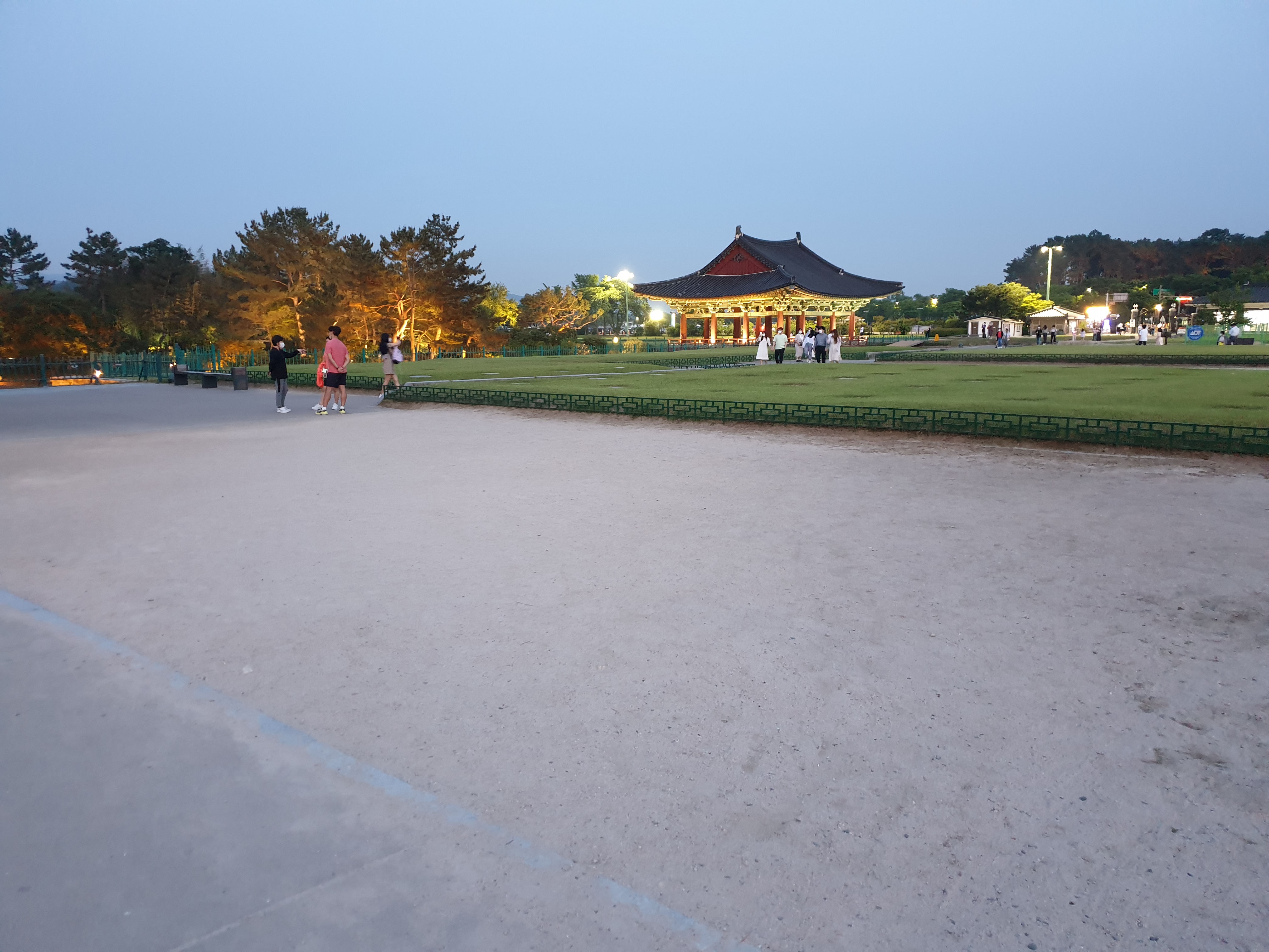 낮에는 없더니 밤에 경주에 있던 사람들이 모두 모여서 사진을 찍는 것 같았습니다
