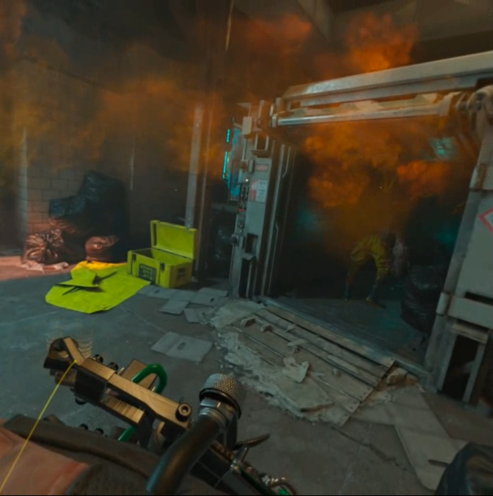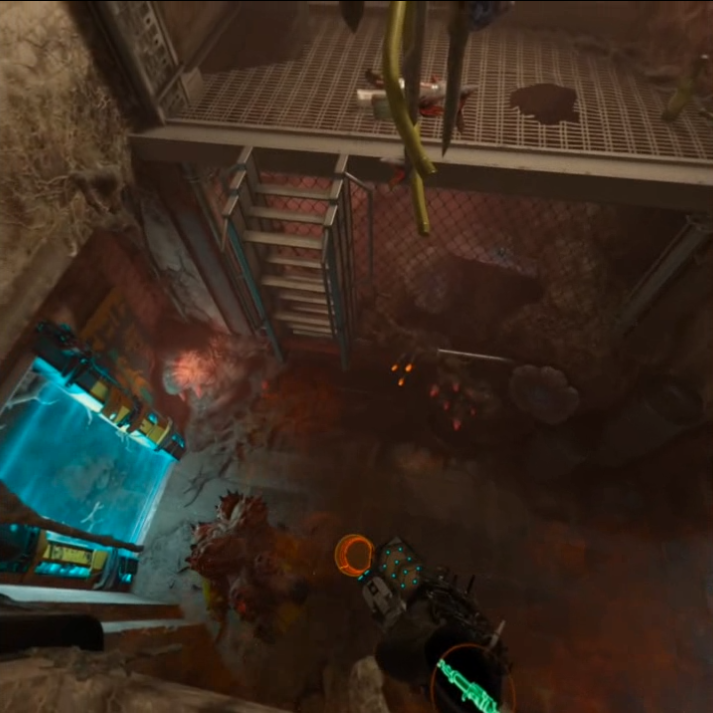 아래와 같은 통로가 나타납니다. 통로를 지나려고 하면 위에서 헤드크랩이 지나갑니다. 헤드크랩이 위의 통로에 있는 물건들을 다 망가뜨리기 전에 쏴 죽이면 "갑각류의 좌절"업적이 해금됩니다. 이어서 전기실을 통해서 다음 맵으로 이동을 합니다.
