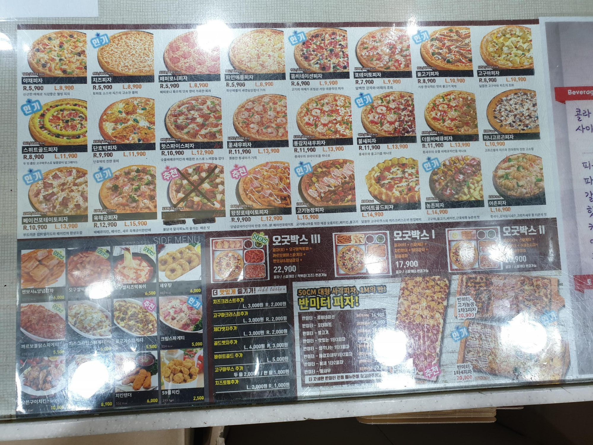 가게에서 찍은 메뉴판입니다
