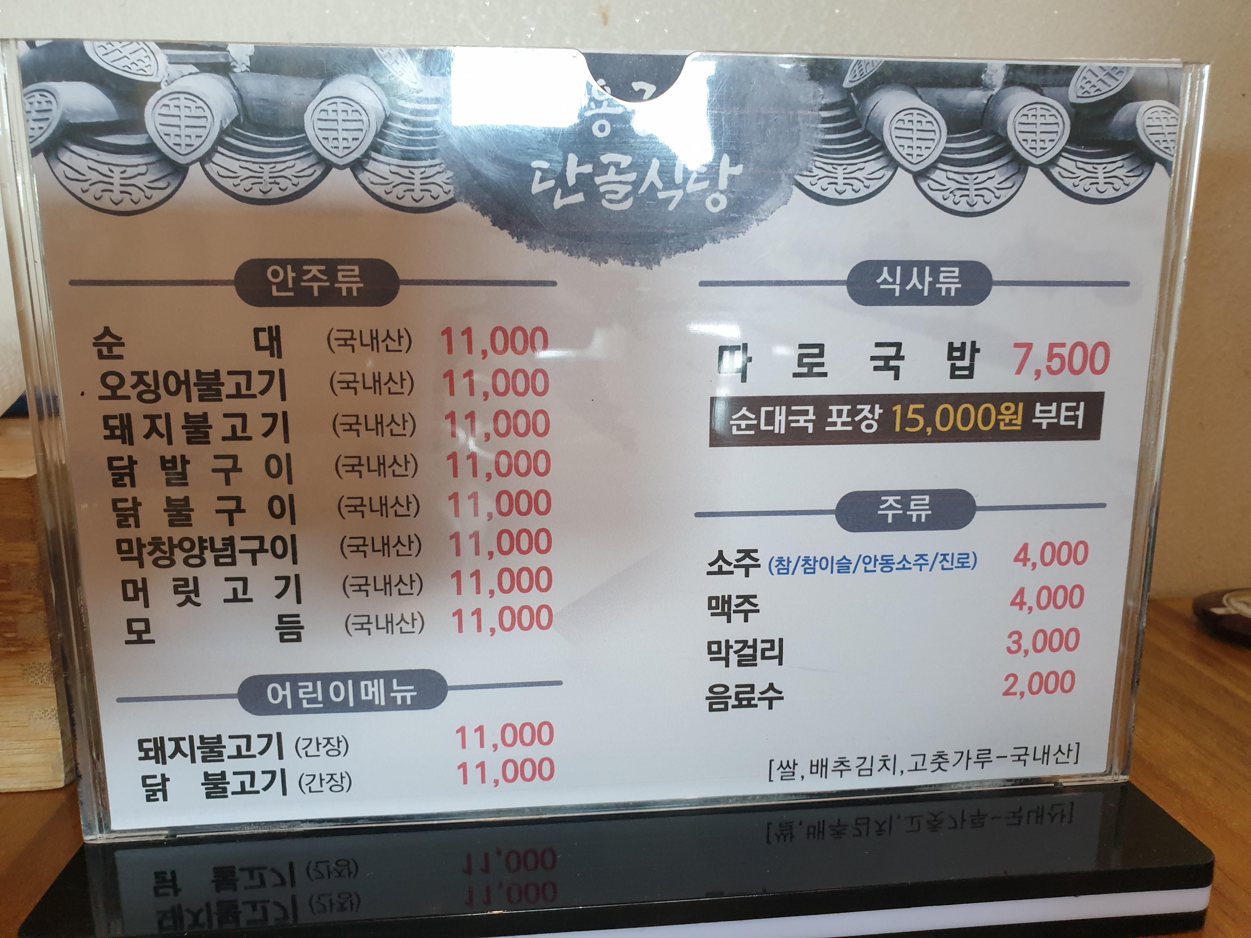 아래는 메뉴판입니다.