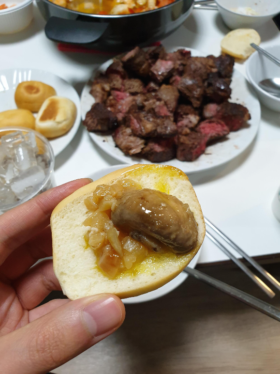 저녁은 숙소에서 감바스와 스테이크를 해서 먹었습니다.